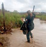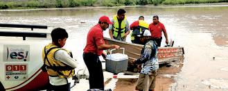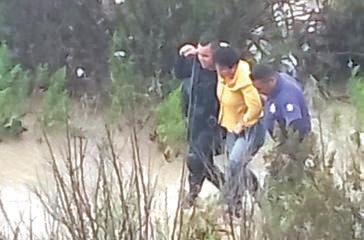 z Rescatan policías a mujer arrastrada por la corriente dentro de su vehículo y en Ramos también salvan a tres de presa.