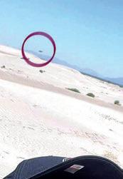A través de redes sociales, un cibernauta comentó haber observado un “platillo volador” en las Dunas de Bilbao, ubicadas en Viesca, Coahuila. El usuario publicó las fotografías acompañadas del texto: “Ayer estaba con unos amigos en una fiesta y de repente un bato se acercó a platicar con nosotros y después nos comentó que hace un par de semanas fue a las Dunas de Bilbao y se hizo una selfie, todo bien… después de unos días se dio cuenta que detrás de él había un ovni.