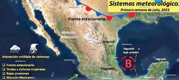 Según autoridades de Protección Civil, se trata del ingreso de un fenómeno denominado monzón mexicano, que se caracteriza por el cambio estacional en la dirección de los vientos cálidos y húmedos entre el continente y el océano, provenientes del Atlántico y el Golfo de México, y que se presentan entre finales de junio y principios de julio.