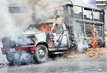 Cuando transitaba por el perifé- rico Luis Echeverría Álvarez, un camión de tres y media toneladas se incendió y terminó reducido a las cenizas, luego de que se prendieran en fuego las balatas debido al exceso de carga.