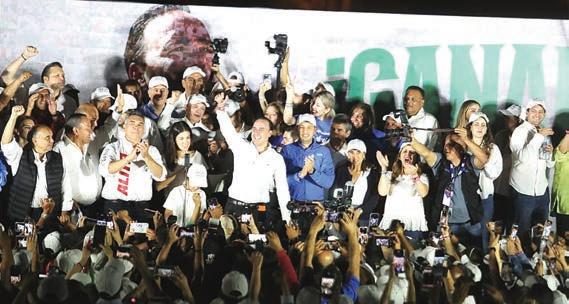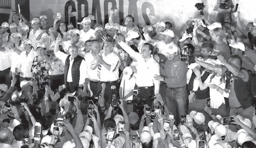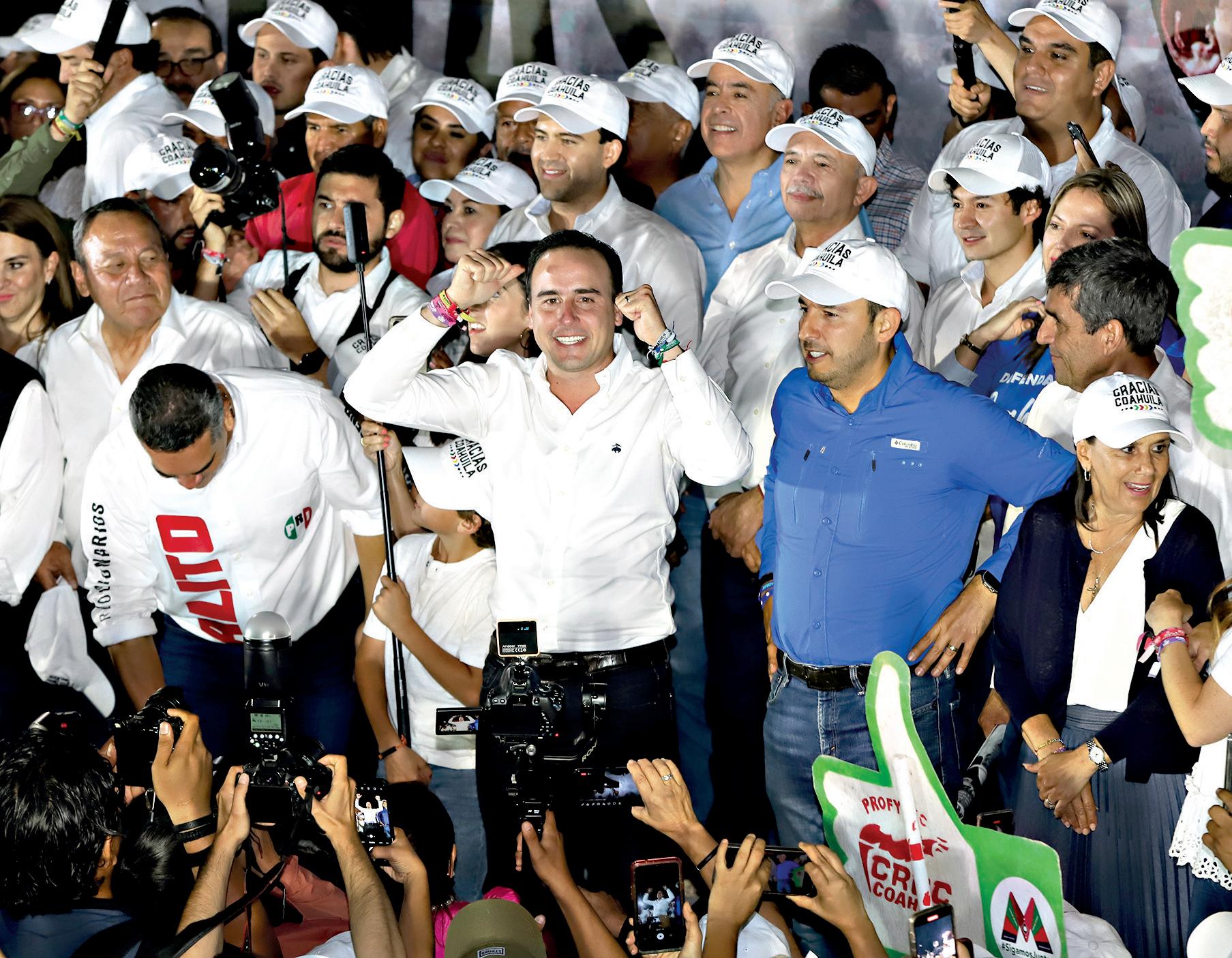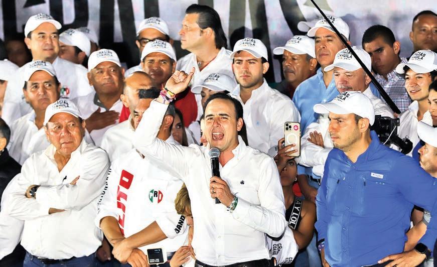 Desfondan a la 4T de forma aplastante z Al tiempo que con la derrota en el Estado de México agravaba su debacle a nivel nacional, el PRI en Coahuila revivió ayer sus tiempos del “carro completo” al arrasar en las elecciones de Gobernador y Congreso local. Manolo Jiménez, que relevará al priista Miguel Riquelme y convertirá a Coahuila en el único estado gobernado 100 años por el tricolor, se proyectaba para recibir hasta el 58.1% de los votos. La división de la 4T en el estado le pasó factura.