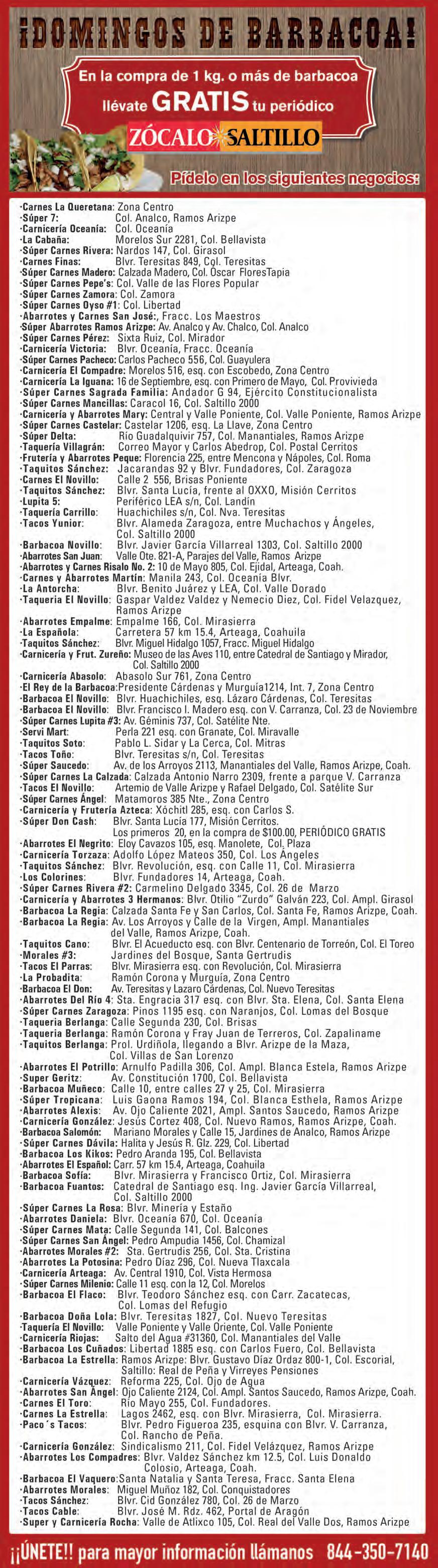 Sábado 6 de mayo del 2023 Zócalo Saltillo clasificados 7F VARIOS