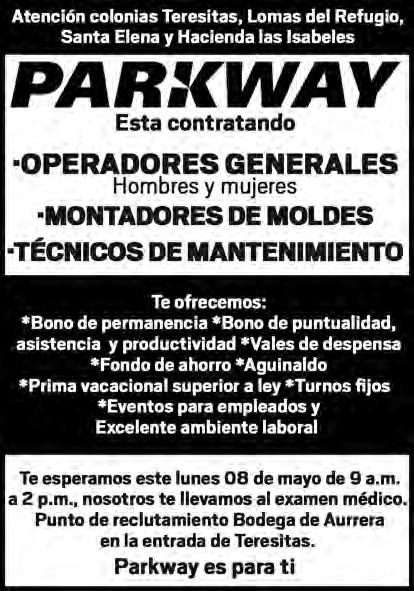 PARA LA CASA AL NORTE DE LA CUIDAD HORARIO DE 7AM A 4PM DE LUNES A VIERNES SUELDO