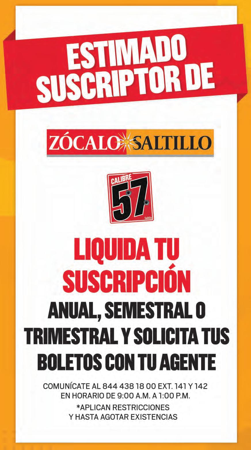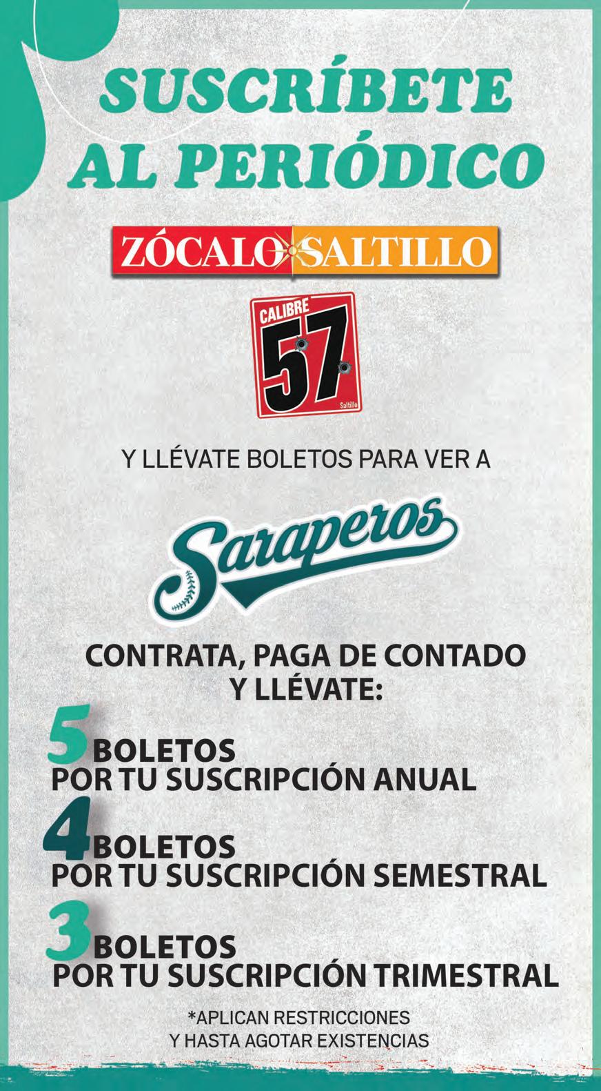 Sábado 6 de mayo de 2023 | Año XV | Número 5438 | 32 páginas | 4 secciones | www.zocalo.com.mx $10.00 @PeriodicoZocalo Periodico Zócalo zocalosaltillo @ZocaloWebMedia EVITAN TRAGEDIA MIGRANTE