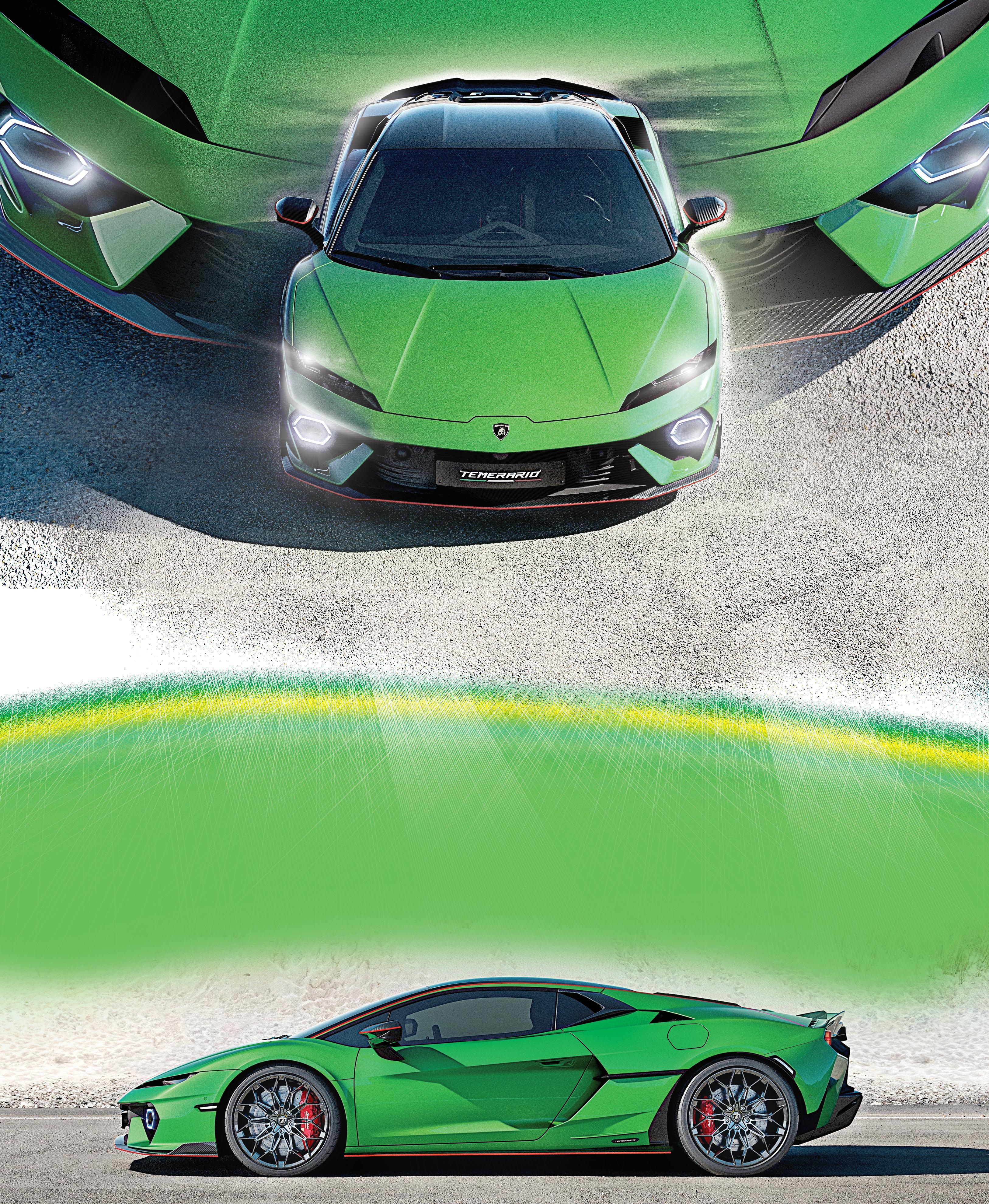 caracterizan a los deportivos de Sant’Agata Bolognese. Su diseño se enfoca en tres objetivos: estabilidad a altas velocidades, óptimo rendimiento de refrigeración y máxima eficacia de frenado. El concepto de aerodinámica es clave en el deportivo Temerario. Cuenta con tomas de aire específicas con deflectores en