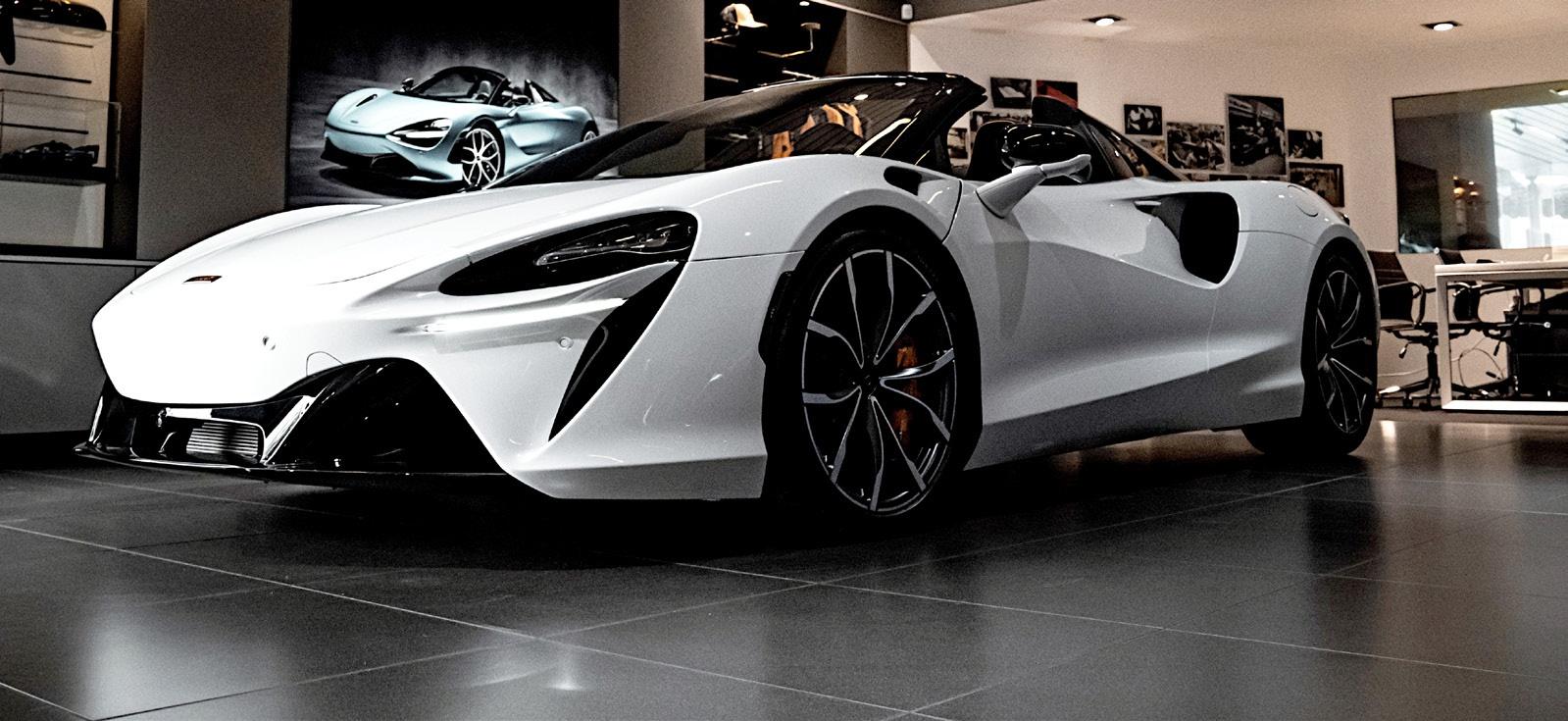 Desde 2021, McLaren cuenta con una estrella de la velocidad: el Artura. Un superdeportivo que cuenta con una arquitectura ligera de fibra de carbono, diseño minimalista y aerodinámica con conductos ocultos en puertas y contrafuertes traseros que canali-