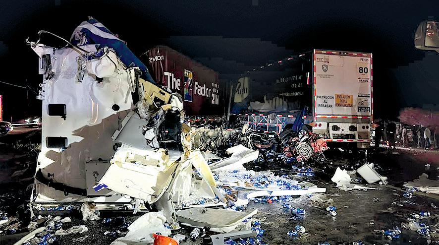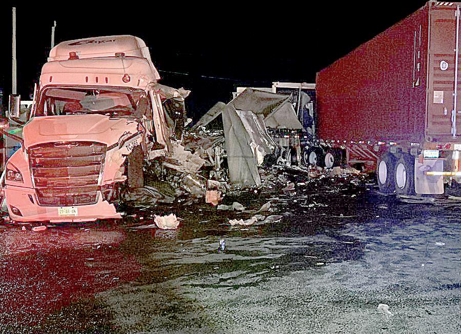 Anoche, dos tráileres chocaron de frente en la carretera Saltillo-Zacatecas después de que uno de los conductores perdió el control de la unidad, a la altura del ejido Guadalupe Victoria, dejando la cifra negra de un chofer muerto y otro grave.