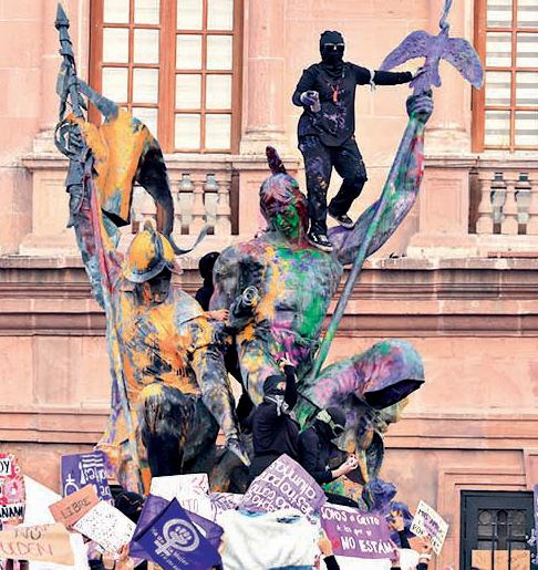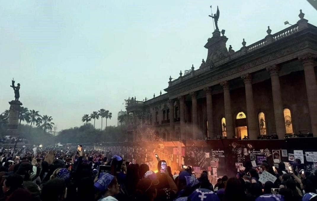 festaron y elementos de Seguridad Pública, sobre todo en la plancha del Zócalo, frente a la Catedral Metropolitana. En Guadalajara hubo un altercado entre feligreses que hicieron una valla humana para proteger al Templo del Carmen y las manifestantes, quienes les lanzaron agua y botellas. En Monterrey, feministas realizaron quemas y provocaron explosiones frente al Palacio de Gobierno.