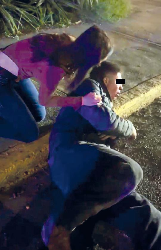 Elementos policiales se colocaron tomadas del brazo formando una barrera humana