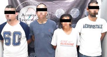 La Fiscalía General del Estado informó que los detenidos, César Alejandro “N”, de 40 años; César Jaime, de 39; Carlos Ricardo, de 37, y Sonia Marisela, de 38 años, todos originarios de Nuevo León, fueron ya internados en los ceresos varonil y femenil de esta ciudad, en espera de la audiencia inicial que se les formula-