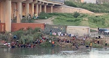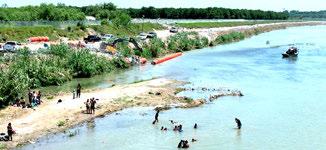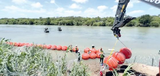 INSTALAN MURO FLOTANTE ANTE MIRADA DE MIGRANTES