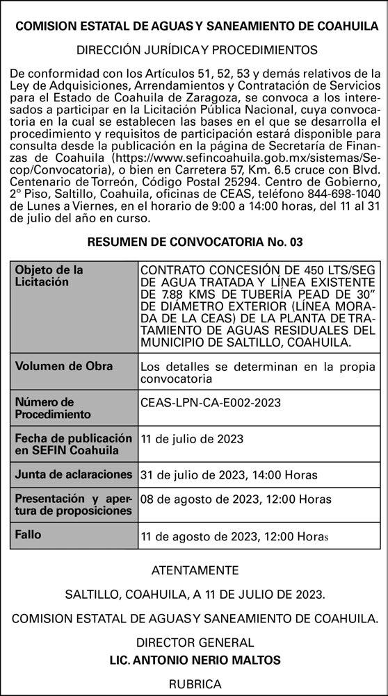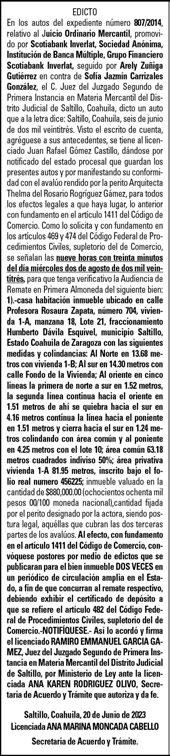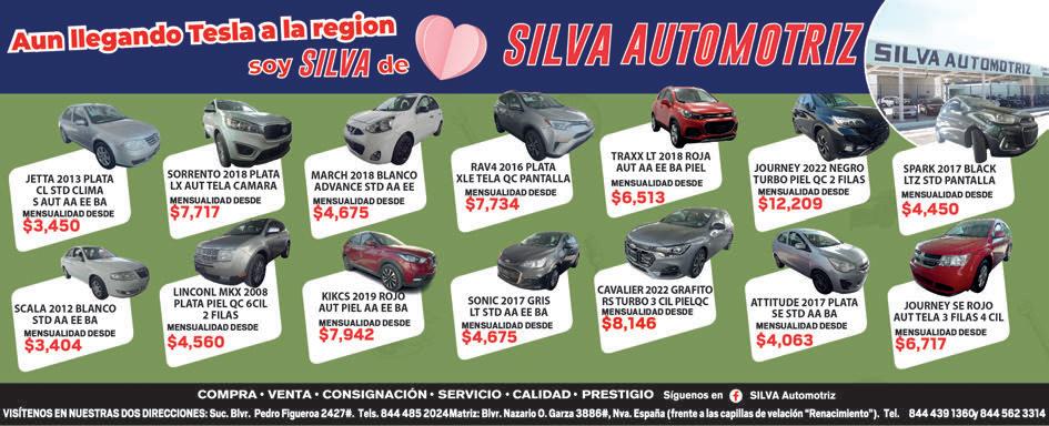 48-34 VIAJES NACIONALES CHALMA, PUEBLA ATLIXCO Y CUETZALAN DEL 3 AL 7 DE AGOSTO 81-16-34-10-77 Y 844587-41-10 PLAYA, TAJIN, PAPANTLA, REAL DE JULIO 25 AL 30 $4,990. 844-171-07-76 WP 811661-2933 EVENTOS VIDEO JUEGOS A COMISION, BUENAS GANANCIAS. 844-87035-38 MOBILIARIO CAPELOS, SILLAS, MESAS Y MANTELES 844-417-73-50 Y 844162-60-48 VARIOS PRÉSTAMOS A JUBILADOS Y PENSIONADOS DEL IMSS, TASA PREFERENCIAL DEL 1.8% INF AL 844-764-34-27 OTROS DIOS TE. AMA. INFORMES .844622-53-74 OFERTA GRAN PRECIO DE ALBERCA DE FIBRA DE VIDRIO SEMINUEVA, 3.20 DE LARGO POR 2.30 DE ANCHO Y 60 CENTIMETROS DE PROFUNDIDAD, CON MOTOR, FORMA TIPO RIÑON. CELULAR. 844-160-90-71 TE GUSTARIA VERTE Y SENTIRTE MEJOR..INFORMES 844-62253-74 Martes 11 de julio del 2023 Zócalo Saltillo clasificados 7F VARIOS PLOMERÍA