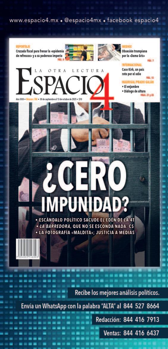 A como están las cosas, todo apunta a que el actual líder de la Sección 5 del Sindicato Nacional de Trabajadores de la Educación, Everardo Padrón García, no va a ser renovado para un nuevo periodo. Incluso hay apuestas de que la sucesión podría adelantarse para favorecer a la pupila del senador y líder absoluto de la SNTE, Alfonso Cepeda Salas. Por un lado, han aflorado diversas irregularidades al interior de la Sección Quinta, que no han pasado desapercibidas ante la dirigencia nacional. Por el otro, es innegable el posicionamiento que ha mantenido la diputada Magaly Hernández Aguirre, metida de lleno con temas magisteriales y del sindicato. Será natural el relevo. Además que ya tiene rato calentando el brazo.
