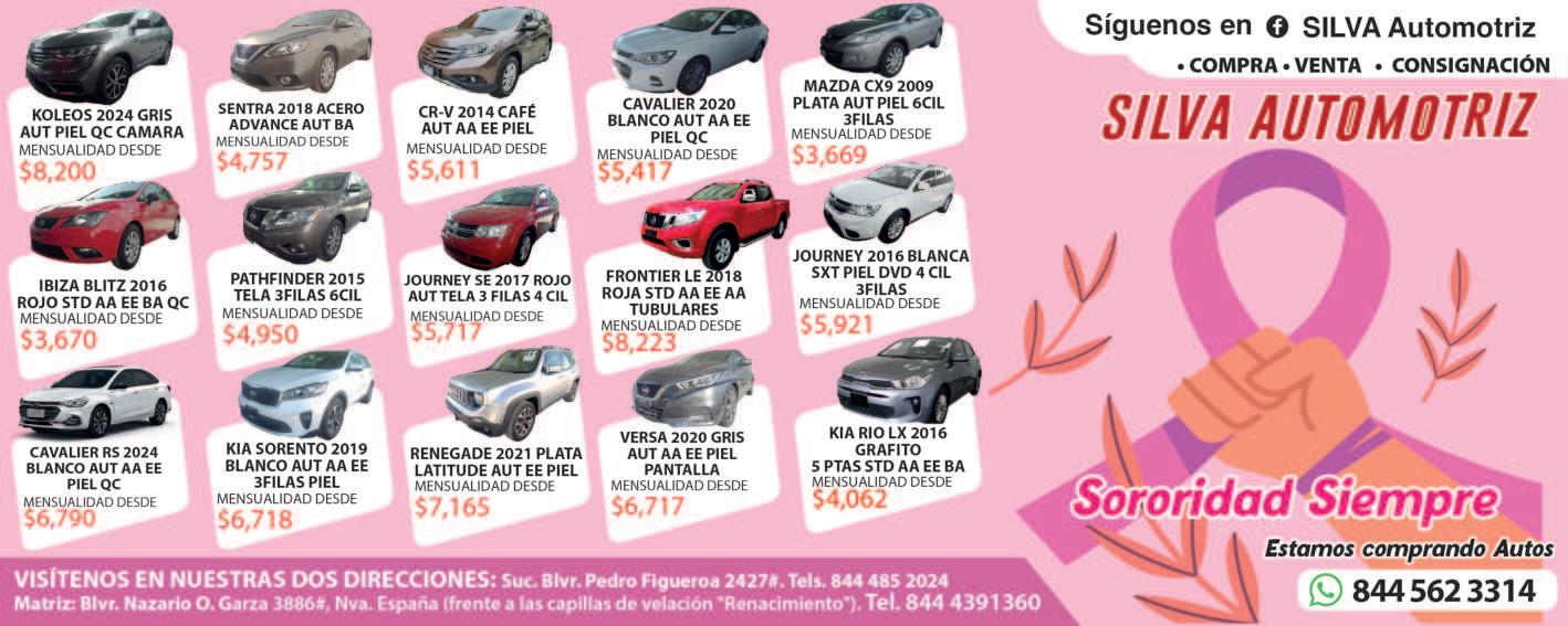 TORNADO 2018 ROJO STD AA EE BA MENSUAL DESDE $4,471 INFORMESAL844439-13-60 TOWN & COUNRY 2012BLANCA LTD PIEL QC CÁMARA 3 FILAS MENSUALIDAD DESDE $4,675.00 AL 844439-13-60 NISSAN FRONTIER LE 2018 ROJASTDAAEEBA TELA TUMBABURROSMENSUALDESDE$8,223.00 INFORMES844-439-13-60 KIARIO2021AZUL LXHBAUTAAEE BA MENSUAL DESDE$5,341844439-13-60