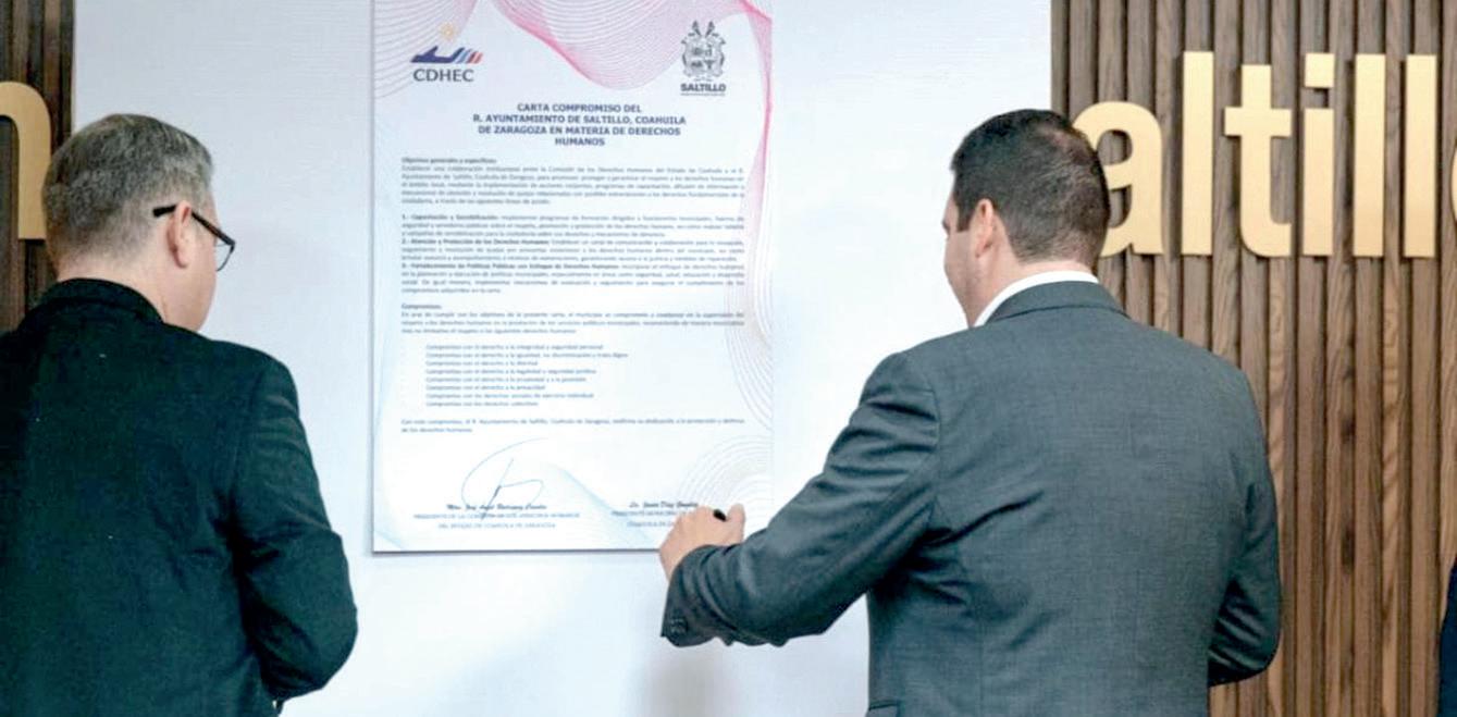 Como parte del compromiso por velar por los derechos humanos de los saltillenses, Javier Díaz y el om- budsman coahuilense, José Ángel Rodríguez Canales, firmaron una carta compromiso con acciones bien claras para hacer valer y preservar las garantías individuales de la ciudadanía. Aquí no sólo hay una buena relación, pues más allá de la camaradería, en la gestión sarapera se toma muy en serio la correcta atención y el respeto a la ciudadanía. Tanto así que son raras las quejas que se generan, incluso por parte de la Comisaría de Seguridad y Protección Ciudadana que se dice fácil, pero no cualquier policía mantiene un nivel casi nulo de señalamientos.
