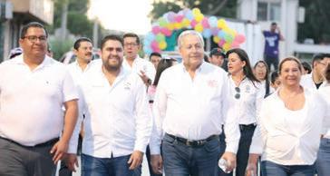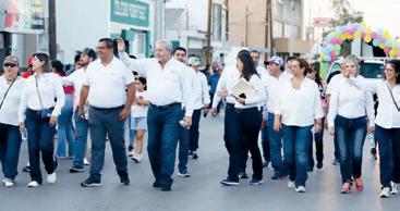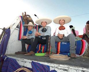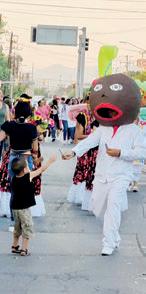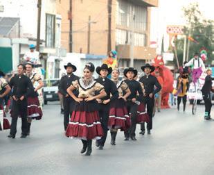 El alcalde Chema Fraustro Siller; su esposa, Beatriz Dávila de Fraustro, regidores y directores, iniciaron el desfile con la participación de carros alegóricos. Fiesta del pueblo, pues.