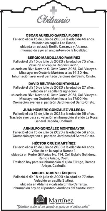 Por cierto, a casi un año de distancia, sigue sin resolverse la situación de las familias de los trabajadores; hasta ahora, lo que recibieron fue promesas para la recuperación de los restos, por parte de Manuel Bartlett, director de la Comisión Federal de Electricidad; Laura Velázquez, coordinadora nacional de Protección Civil, y Luisa María Alcalde, quien era secretaria de Trabajo y se estrena como titular de Gobernación.