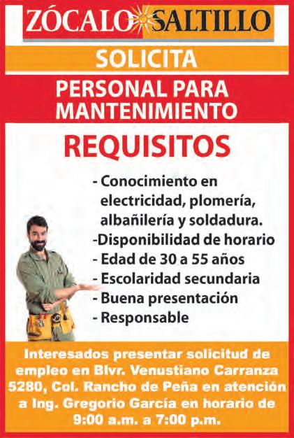 DADOR Y ALBAÑIL, PARA TRABAJOS. PARA MAS INFORMACION COMUNICARSE AL .TELEFONO..844-417-21-50 INGENIERO. JAVIER CISNEROS