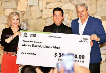 El premio, dotado con un apoyo económico de 200 mil pesos, se entregó el lunes en el marco de la Fiesta Internacional de las Artes (FINA), por el alcalde José María Frausto y Leticia Rodarte Rangel, directora del Instituto Municipal de Cultura (IMCS).