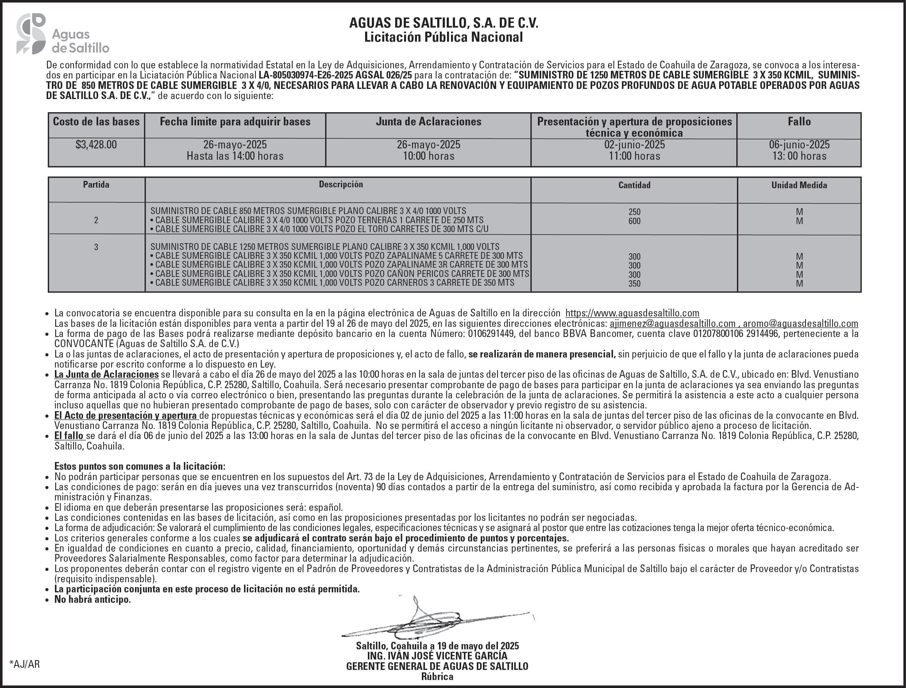 Aguas de Saltillo estará destinando 150 millones de pesos para la compra y equipamiento de cuatro pozos, que estarían sumando entre 4.7 y 6.3 millones de metros cúbicos al caudal anual. La suma de pozos, forma parte de la segunda etapa del Plan Extraordinario contra la Sequía de la paramunicipal. Saltillo cuenta con más de 925 mil habitantes y su única fuente de abastecimiento es subterránea, mediante una batería de 96 pozos profundos, los mismos pozos que hace 22 años se vienen gestionando.