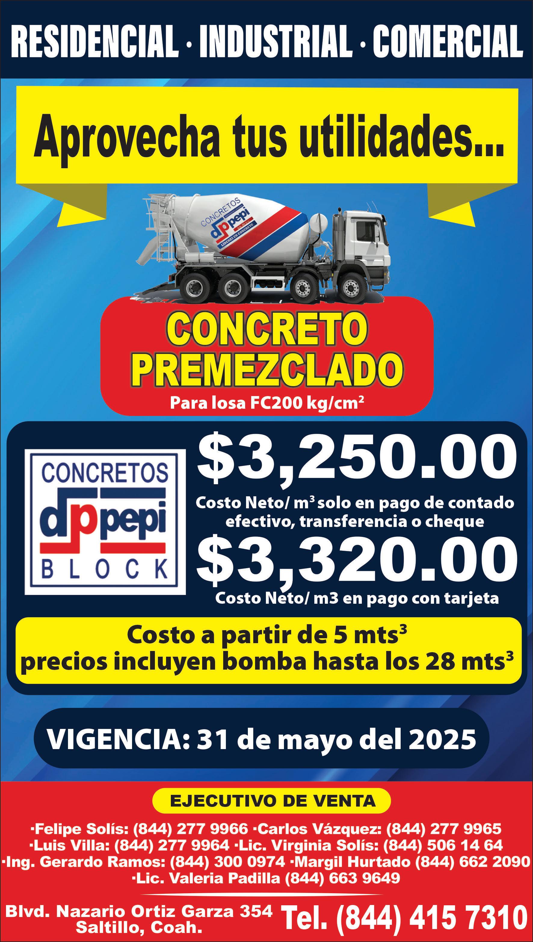 ción industrial validado por Concer. Se trata de dos días de capacitación más evaluación. Entre otros temas, busca acercar a los profesionales a tecnicismos como espesor del suelo, alturas, materiales, rampas de carga y descarga, conceptos que no se contemplan a nivel residencial. Esta certificación se realizará el 26 y 27 de mayo próximos en las instalaciones de la CMIC Saltillo, con precios especiales para asociados de AMPI.