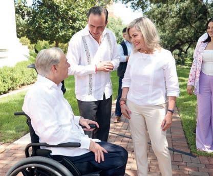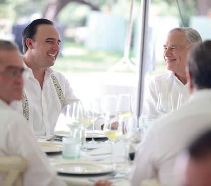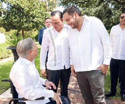 Además asistieron los alcaldes de Saltillo, Chema Fraustro; de Torreón, Román Alberto Cepeda; de Piedras Negras, Norma Treviño, y de Acuña, Emilio de Hoyos; además de los electos de Saltillo y Monclova, Javier Díaz y Carlos Villarreal, respectivamente. Como la gira también fue de promoción económica, estuvieron en la comida en casa del gobernador Abbott empresarios de todas las regiones de Coahuila: Ricardo Martín Bringas, Luis Arizpe, Jesús María Ramón, César Cantú, Eduardo Trizio, Gerardo Benavides, así como los regiomontanos José Antonio Fernández Garza-Lagüera y Eduardo Margain.