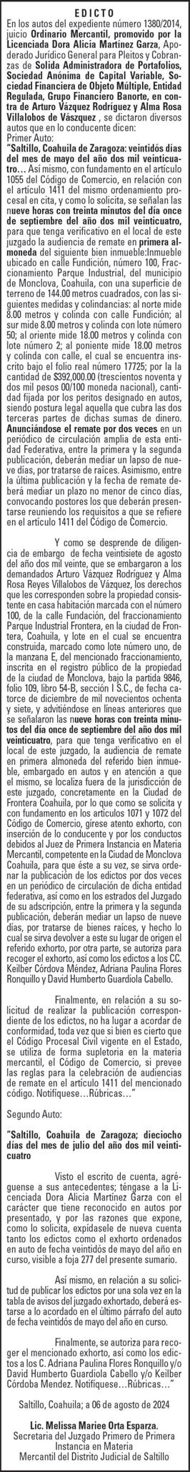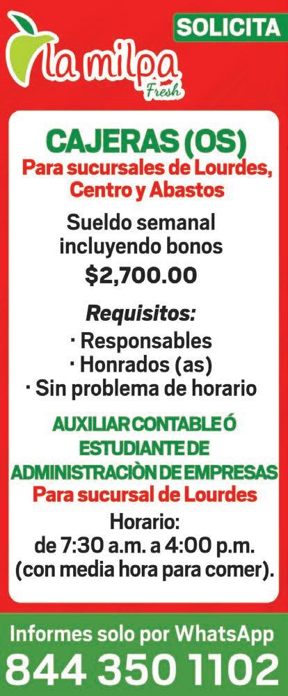 AÑOS. INTERESDOS PRESENTARSE EN MIGUEL HIDALGO # 1228, CASI ESQUINA CON FRANCISCO COSS O COMUNICARSE AL 844-414-44-85