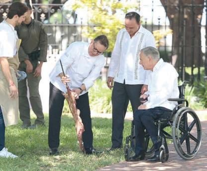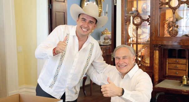 De esta manera, ambos mandatarios reforzaron lazos, y no sólo de cooperación institucional sino de amistad, pues tuvieron una convivencia muy amena en la que hubo un intercambio gastronómico entre ambas entidades, con sus comidas típicas y los vinos de Coahuila. Algo que no se ha visto con ningún mandatario de México, pues ninguno había sido recibido así, en lo que va de la Administración de Abbott. Y como parte de la celebración, llamaron la atención los regalos que ambos mandatarios se hicieron. Greg Abbott obsequió a Manolo un sombrero muy texano, mientras que él recibió una pieza de arte muy coahuilense, una réplica a escala de un mamut con arte huichol.