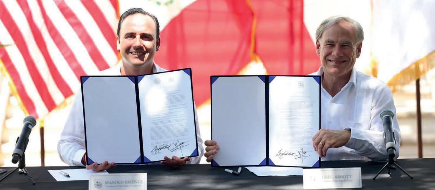 “En el marco del 200 aniversario del nacimiento del Estado Coahuila-Tejas, firmamos un acuerdo con el Gobierno de Texas para fortalecer nuestras relaciones culturales, económicas, turísticas, de seguridad y migración”, señaló el gobernador Manolo Jiménez, tras su reunión de ayer con el Mandatario texano Greg Abbott.