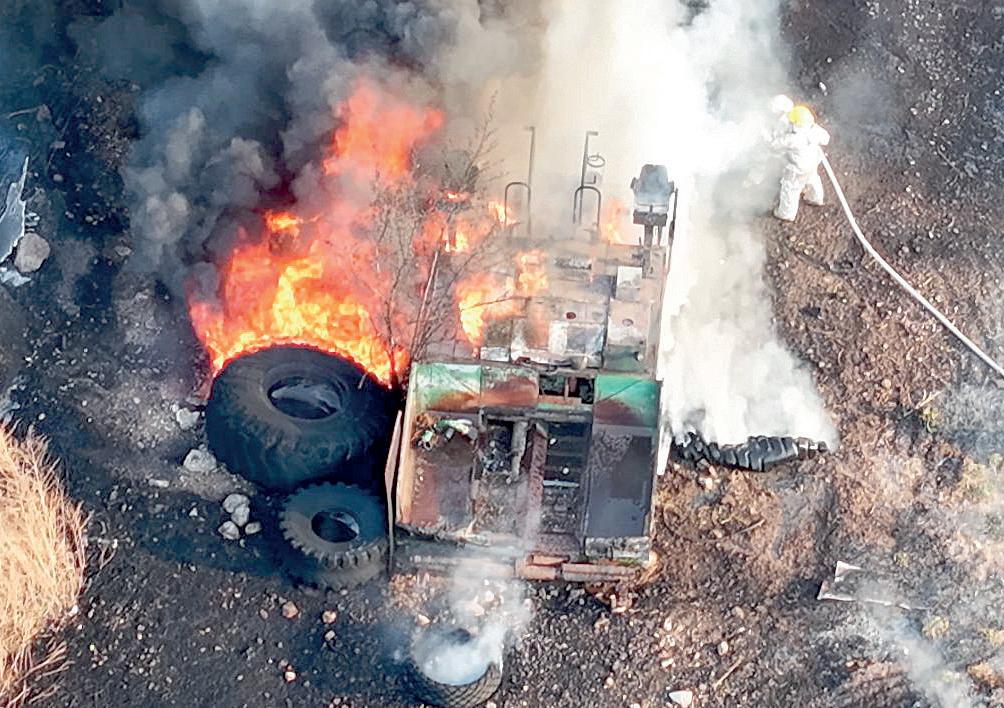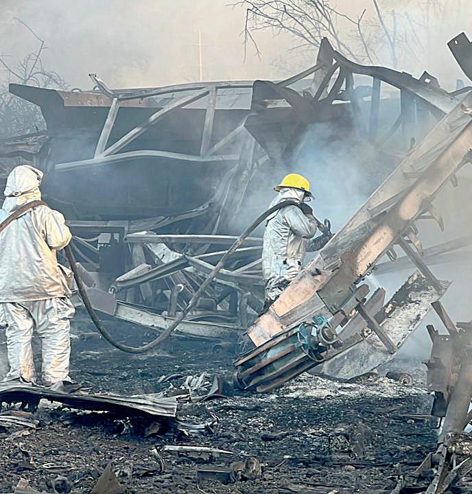 pa, estremeció a Ramos Arizpe ayer por la tarde. El fuego avanzó sin control en un predio del ejido Mesón del Norte y alcanzó material altamente Arrasan llamas con predio y vehículos