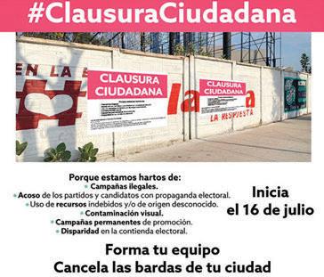 ‘CLAUSURAS’ A LAS ‘CORCHOLATAS’ Saltillo se va a sumar a las ciudades en donde la propaganda anticipada e indiscriminada de las “corcholatas” presidenciales será “clausurada” por integrantes de organismos de la sociedad civil que se arremangaron la camisa y se dieron a la tarea de colocar pintura y calcas con la frase de “clausurado”.