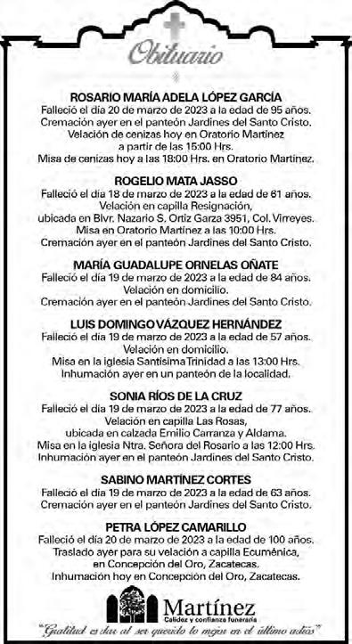 De forma reciente, el Ayuntamiento de Ramos Arizpe le había hecho un homenaje por su trayectoria en los escenarios, así como por su labor en la gestión y difusión cultural tanto en su municipio de nacimiento como en el estado. La Secretaría de Cultura le organizará un homenaje hoy a partir de las 13:00 horas en
