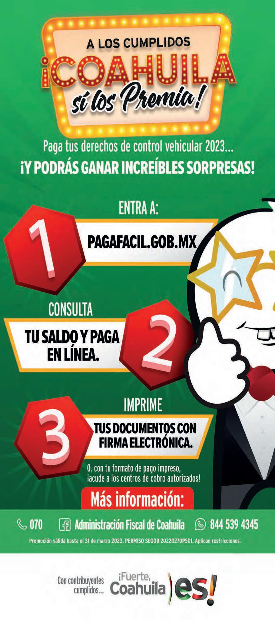 Entregas en Saltillo Facultad de Ciencias Químicas 1 y 22 de marzo de 9:00 a 15:00 horas z Instituto de Ciencias y Humanidades 23 y 24 de marzo de 9:00 a 15:00 horas.