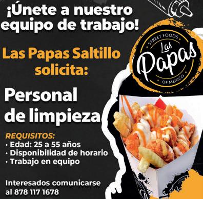 Y CHOFER PARA CARROZA DE 30 A 58 AÑOS, DISPONIBILIDAD DE HORARIO . INTERESADOS PRESENTARSE EN MIGUEL HIDALGO #1228, CASI ESQUINA CON FRANCISCO COSS O COMUNICARSE AL 844-277-84-70 Y 844-41444-85. ENTREVISTAS DE LUNES A VIERNES DE 9;00 A 1;00 PM Y DE 4;00 A 6;00 PM. OFRECEMOS PAGO SEMANAL, VALES DE DESPENSA Y PRESTACIONES DE LEY, CONTRATACION INMEDIATA, PRESENTARSE CON PAPELERIA OFICIAL