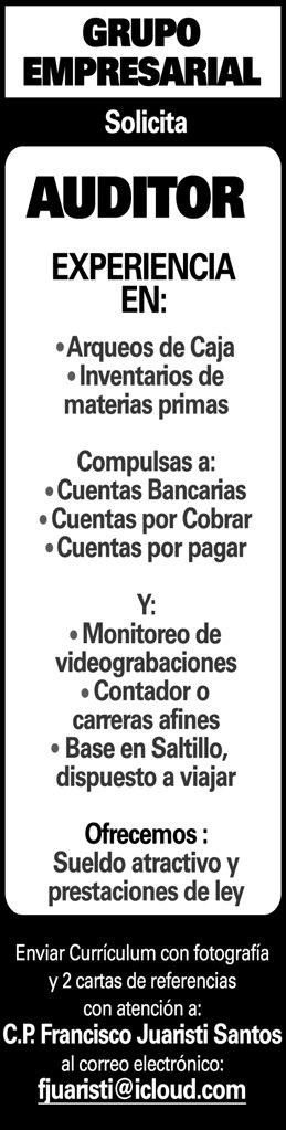 .EMPRESA IMPORTANTE SOLICITA AUXILIAR GENERAL Y PULIDOR DE MARMOL, SEXO MASCULINO MAYOR DE 28 AÑOS, CON DISPONIBILIDAD DE HORARIO Y ACTITUD DE SERVICIO.. INTERESADOS PRESENTARSE EN MIGUEL HIDALGO #1228, CASI ESQUINA CON FRANCISCO COSS O COMUNICARSE AL 844-277-84-70 Y 844-414-44-85. ENTREVISTAS DE LUNES A VIERNES DE 9;00 A 1;00 PM Y DE 4;00 A 6;00 PM. OFRECEMOS PAGO SEMANAL, VALES DE DESPENSA Y PRESTACIONES DE LEY, CONTRATACION INMEDIATA, PRESENTARSE CON PAPELERIA OFICIAL.