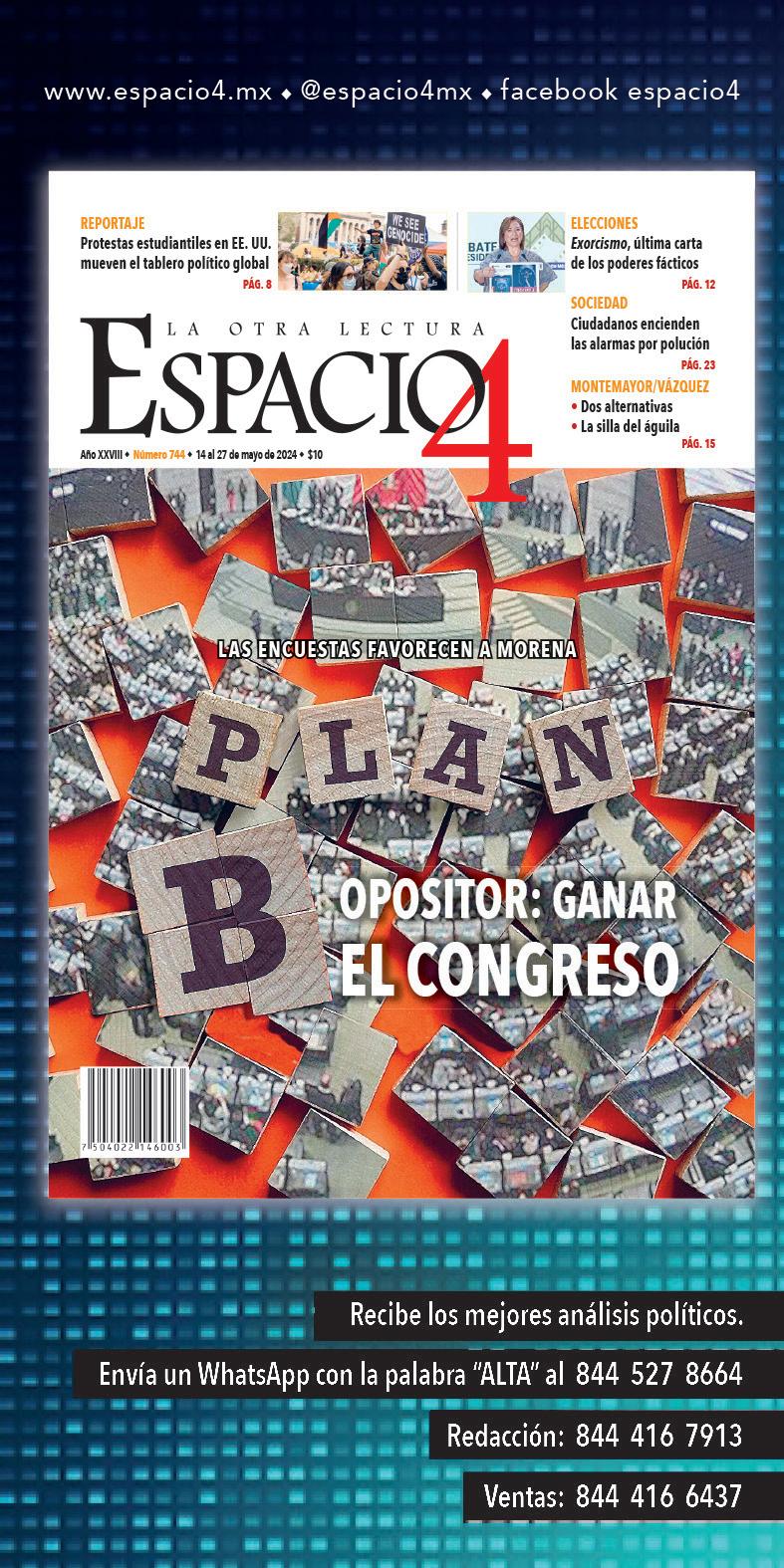22 de los últimos 30 días Saltillo superó los límites para 2.5 micras 24 de 30 días se rebasó el parámetro en 10 micras @PeriodicoZocalo Periodico Zócalo zocalosaltillo @ZocaloWebMedia Miércoles 22 de mayo de 2024 | Año XVI | Número 5813 | 32 páginas | 4 secciones | www.zocalo.com.mx $10.00 SUFREN ALUMNOS DEL CIZ ‘INFIERNO’ EN INSTALACIONES n 1C