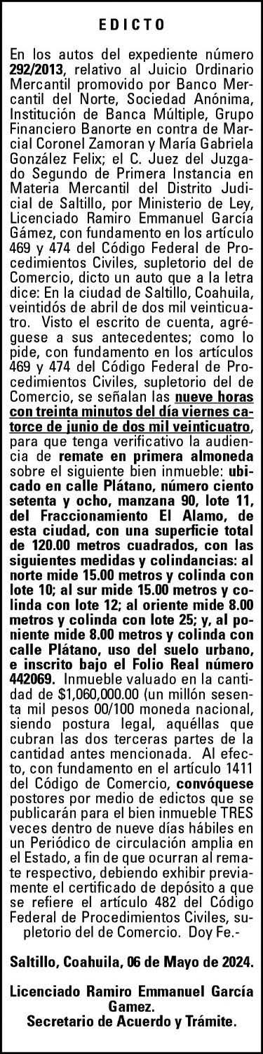 Miércoles 22 de mayo de 2024 Zócalo Saltillo clasificados 7F
