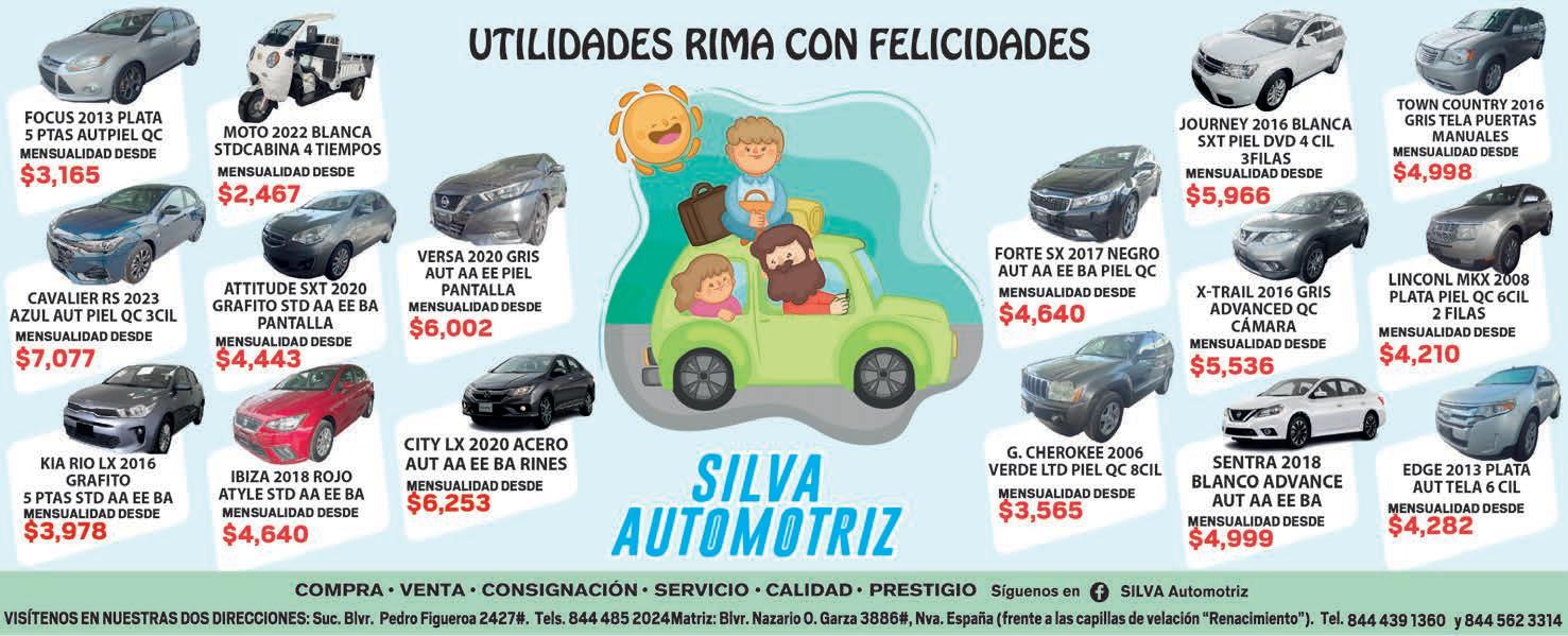 6F Clasificados ZóCalo Saltillo Miércoles 22 de mayo de 2024 SUR ORIENTE NISSAN VOLKSWAGEN DODGE