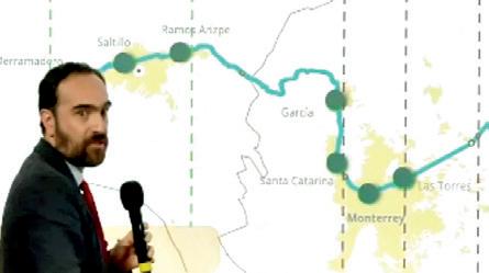 kilómetros, desde el norte de Monterrey hacia Bustamante, y otra de 136 kilómetros, hasta Nuevo Laredo. “Se están haciendo los estudios de Derramadero hasta García y Santa Catarina, y vamos a sacar la licitación de la zona metropolitana de Monterrey”, señaló.