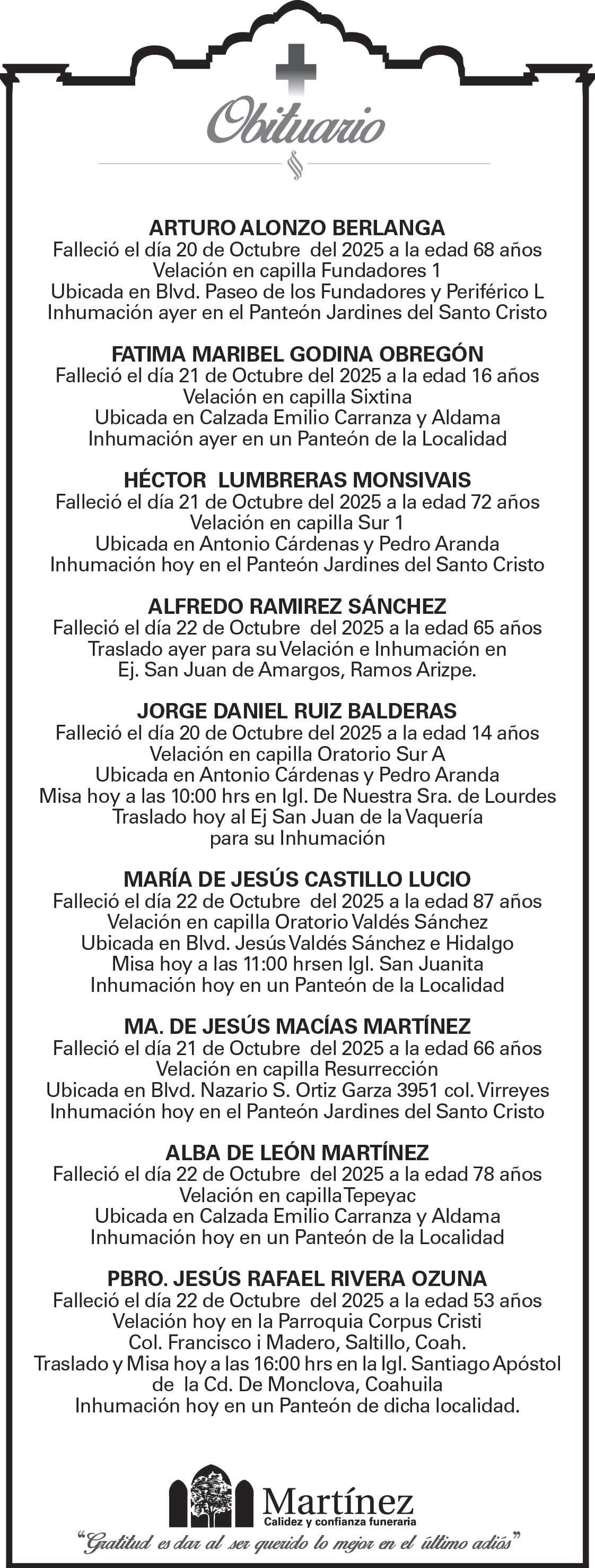 Para el Festival de la Catrina, el Alcalde de Ramos Arizpe, Tomás Gutiérrez Merino, espera una gran convocatoria, toda vez que representa una oportunidad para mantener vivas las costumbres que identifican a la comunidad. Esto irá del 31 de octubre al 2 de noviembre, con actividades culturales, gastronómicas y artísticas en el Centro de la ciudad. Será uno de los últimos eventos multitudinarios del año para el municipio, con la firme intención de que las nuevas generaciones valoren la riqueza de nuestra cultura. Además viene junto con pegado con la Feria del Tamal y Pan de Pulque 2025.