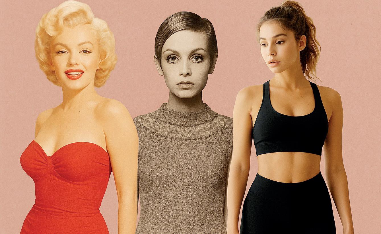 estadunidenses. La primera, además de convertirse en símbolo sexual de la posguerra, encarnó el ideal de millones de jóvenes que buscaban imitarla: una silueta vigorosa, con piernas firmes y pantorrillas bien definidas, cintura esbelta, busto generoso y una cabellera abundante que enmarcaba un rostro luminoso. Su sonrisa amplia, labios encarnados, nariz respingada y mirada ingenua reforzaban el arquetipo de la mujer sensual y accesible de los años 50. El punto de inflexión llegó en la década de 1960, cuando el paradigma de la belleza femenina cambió radicalmente. La voluptuosidad cedió lugar a la estilización: se exaltó la figura extremadamente delgada, de piernas largas y escasas curvas, representada por Lawson, modelo y cantante inglesa en la época gloriosa de la música pop. Para ajustarse a ese nuevo canon, muchas mujeres recurrieron a corsés, dietas estrictas, fajas, medicamentos riesgosos y masajes reductivos, en una lu-