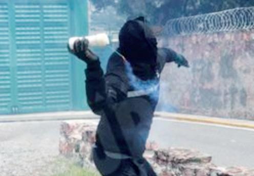 En respuesta, desde el interior de la 35 Zona Militar, soldados lanzaron gas lacrimógeno contra los normalistas. El intercambio de petardos y gases duró unos minutos. n El Universal
