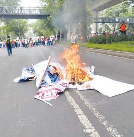 z Los maestros incendiaron propaganda, lanzaron piedras y palos e hicieron pintas.