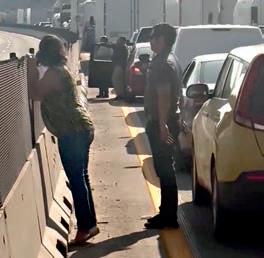 z Viajeros ayer incluso bajaron de sus vehículos, ante la autopista paralizada.