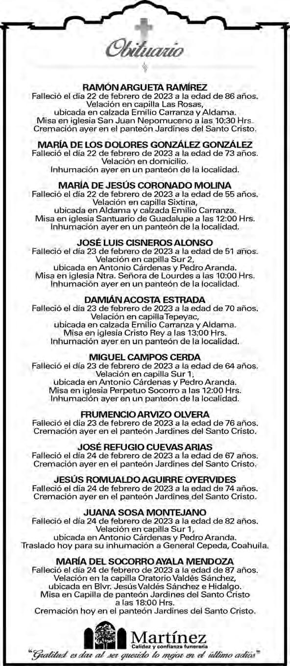Para que no digan que por acá la gente es apática a las movilizaciones sociales, son varias las ciudades de Coahuila apuntadas para la concentración de este domingo, conocida como El 26F, para la defensa de las instituciones, de la democracia y protestar por la reforma electoral del presidente Andrés Manuel López Obrador, conocida como Plan B. Los organizadores, entre ellos las asociaciones ciudadanas México Unido, UNE México y el Frente Cívico Nacional, esperan que la manifestación sea más nutrida en Saltillo y Torreón, pero también están consideradas Cuatro Ciénegas, Monclova, Parras y Piedras Negras, de tal manera que la aportación del estado al movimiento será de las más relevantes en el país.