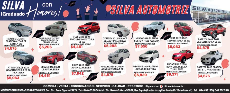 AUTOS CHEVROLET 400SS 1998 ROJA CAB SENCILLA AUT TELA MENSUAL DESDE $6,105.00 844-4-39-13-60 ATTIUTUDE SXT 2020 GRAFITO STD AA EE BA PANTALLA MENSUAL DESDE $5,063 844439-13-60 AVEO LT 2018 AZUL STD AA EE BA ABS MENSUAL DESDE $4,471.00 844-439-13-60 BEAT 2020 ROJO SEDAN STD AA EE BA MENSUAL DESDE $5,083 INFORMES AL 844-439-13-60 CAVALIER 2022 GRAFITO RS TURBO 3 CIL PIEL QC MENSUAL DESDE $8,146 844-439-13-60 CAVALIER LS 2019 ROJO AUT AA EE BA TELA MENSUAL DESDE $5,084.00 844-439-13-60 FOCUS 2014 ROJO LUXURY AUT PIEL MENSUAL DESDE $5,083 INFORMES AL 844-43913-60 MALIBU 2017 BLANCO PIEL QC PANTALLA 4 CIL MENSUALIDAD DESDE $6921.00 844-439-13-60 MALIBU LT 2013 PLATA AUT 4 CIL TELA MENSUAL DESDE $3,778 INFORMES AL 844-439-13-60 MALIBU LT 2015 BLANCO AUT AA EE BA TEL 4 CIL MENSUAL DESDE$4,675 844-439-13-60 SONIC 2017 GRIS LT STD AA EE BA MENSUAL DESDE $4,675 AL 844439-13-60 SPARK 2017 BLACK LTZ STD PANTALLA MENSUAL DESDE $4,450 INFORMES AL 844-43913-60 TRAXX LT 2018 ROJA AUT AA EE BA PIEL MENSUAL DESDE $6,513.00 844-43913-60 FIAT FIAT MOBI 2020 GRIS OSCURO LIKE STD TELA 5 PTAS MENSUAL DESDE $4,328 844-439-13-60 FORD FUSION 2017 GRIS IMAN SE AUT PIEL QC CÁMARA MENSUALIDAD DESDE $7,350 AL 844-439-13-60 XT5 CADILLAC 2017 NEGRO PIEL QC CÁMARA 6 CIL MENSUAL DESDE $9.902 AL 844-439-13-60 NISSAN ALTIMA 2016 PLATA ADV NAVI AUT PIEL QC MENSUAL DESDE $5,900.00 844-439-13-60 FRONTIER LE 2019 ROJA STD AA EE BA TELA TUMBABURROS MENSUAL DESDE $9,371 INFORMES 844-439-13-60 KICKS 2019 ROJO AUT PIEL AA EE BA MENSUAL DESDE $7,942.00 844-439-13-60 LINCONL MKX 2008 PLATA PIEL QC 6 CIL 2 FILAS MESUALIDAD DESDE $4,560 INFORMES 844439-13-60 MARCH 2018 BLANCO ADVANCE STD AA EE MENSUAL DESDE $4,675 INFORMES AL 844-43913-60 NEON SE 2020 BLANCO AUT AA EE BA TELA MENSUAL DESDE $5,839.00 INFORMES 844439-13-60 SENTRA 2018 BLANCO ADVENCE AUT AC EE BA MENSUAL DESDE $5,696.00 844-439-13-60 VERSA ADVENCED 2016 ROJO STD AA EE BA CÁMARA RINES MENSUAL DESDE $5,492 INFORMES 844-439-13-60 SEAT IBIZA 2018 BLANCA REFERENCE STD QC MENSUAL DESDE $5,900.00 844-439-13-60 OTROS AQUI COMPRAMOS CARROS PARA DESARMAR. 844-285-99-68 COMPRO CARROS PARA DESARMAR, INFORMES AL 844-311-10-96 y 844-290-16-81 ATTITUDE 2017 PLATA SE STD AA BA MESNUALIDAD DESDE $4,063.00 844-439-13-60 ATTITUDE 2020 PLATA SXT AUT RINES CAMARA MENSUAL DESDE $5,288.00 AL 844-439-13-60 SUV Y PICK UP CHRYSLER TOWN & COUNRY 2011 BLANCA LTD PIEL QC CÁMARA 3 FILAS MENSUALIDAD DESDE $5,206.00 844439-13-60 FORD ESCAPE 2014 PLATA “S” AUT AA EE BA MENSUAL DESDE $5,084 844-43913-60 F-150 2011 ROJO XL AUT 6 CIL CAB EXT MENSUAL DESDE $5,6,105.00 844439-13-60 MAZDA MAZDA CX-9 2009 ALUMINIO 3 FILAS PIEL QC DVD MENSUAL DESDE $5,696.00 844-439-13-60 NISSAN NP300 2018 BLANCA SE STD 4 PTAS AA EE BA MENSUAL DESDE $7,656.00 844-439-13-60 DODGE CAVALIER 2020 BLANCO PREMIER AUT PIEL QC MENSUALIDAD DESDE $6,513.00 844-439-13-60 JOURNEY 2016 BLANCA SXT 4 CIL 3 FILAS TELA MENSUAL DESDE $6,738 844-439-13-60 JOURNEY 2022 NEGRO TURBO PIEL QC 2 FILAS MENSUALIDAD DESDE $12,209 844-439-13-60 RAM 700 2017 ROJA CAB SEN STD AA EE BA MENSUAL DESDE $4,675 844439-13-60 RAV4 2016 PLATA XLE TELA QC PANTALLA MENSUAL DESDE $7,534.00 844-439-13-60 TOWN &COUNTRY 2012 BLANCO PIEL QC 3 FILAS PANTALLA MENSUAL DESDE $5,819 844-439-13-60 MINI VAN Y VANS HONDA JOURNEY SE 2017 ROJA AUT TELA 3 FILAS 4 CIL MENSUAL DESDE $6,717 INFORMES AL 844-43913-60 ODISSEY 2011 BLANCA EXL AUT PIEL 3 FILAS MENSUAL DESDE $5,288.00 INFORMES AL 844-439-13-60