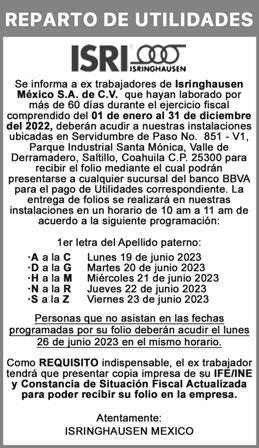6F Clasificados ZóCalo Saltillo Domingo 25 de junio del 2023 NISSAN HONDA CHOFERES VARIOS VARIOS ELECTRICIDAD