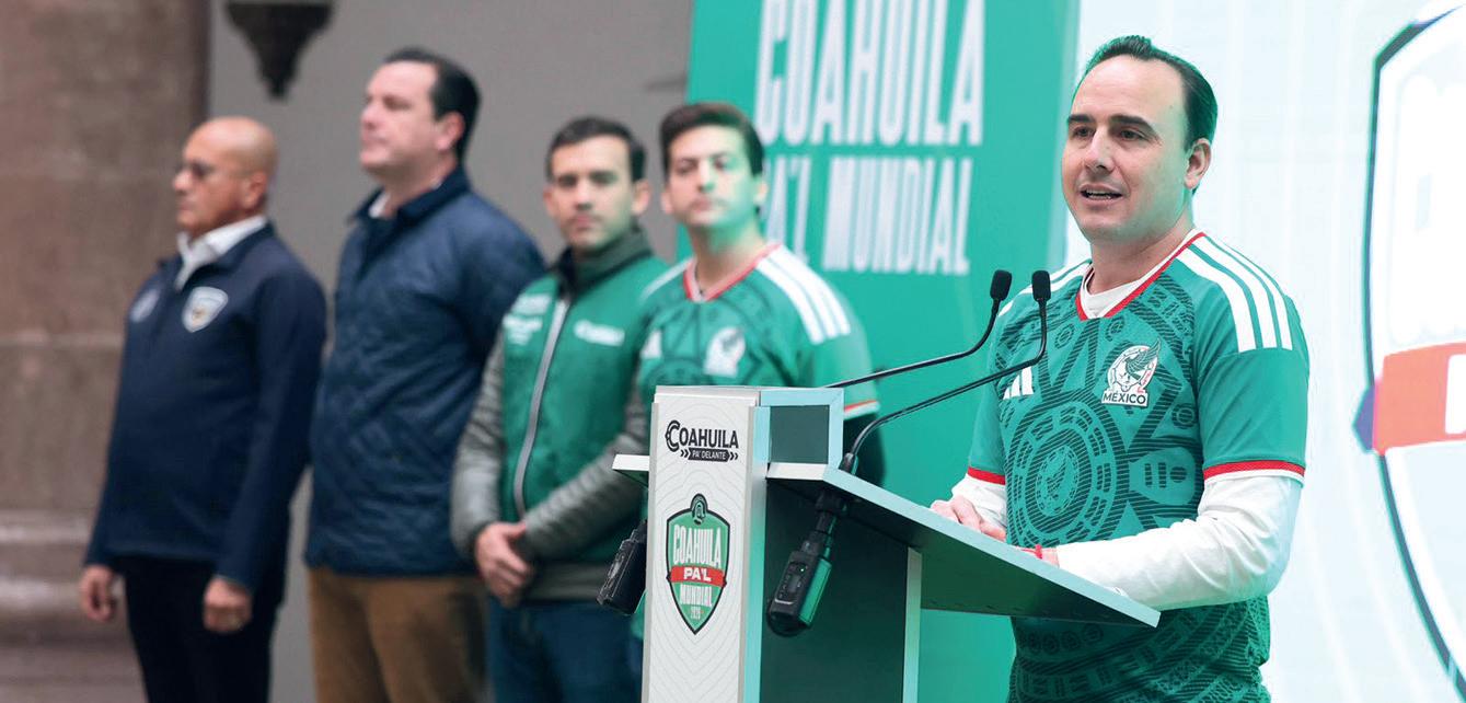 “Coahuila tiene ruta Pa’l Mundial”, dijo el gobernador Manolo Jiménez Salinas, anunciando una importante cantidad de eventos de promoción para captar a 1.5 millones de turistas que acudirán a ver partidos en Monterrey durante la Copa del Mundo, también torneos y caravana mundialista por todo el estado, y dos Fan Fest para ver los partidos en vivo en pantallas públicas.