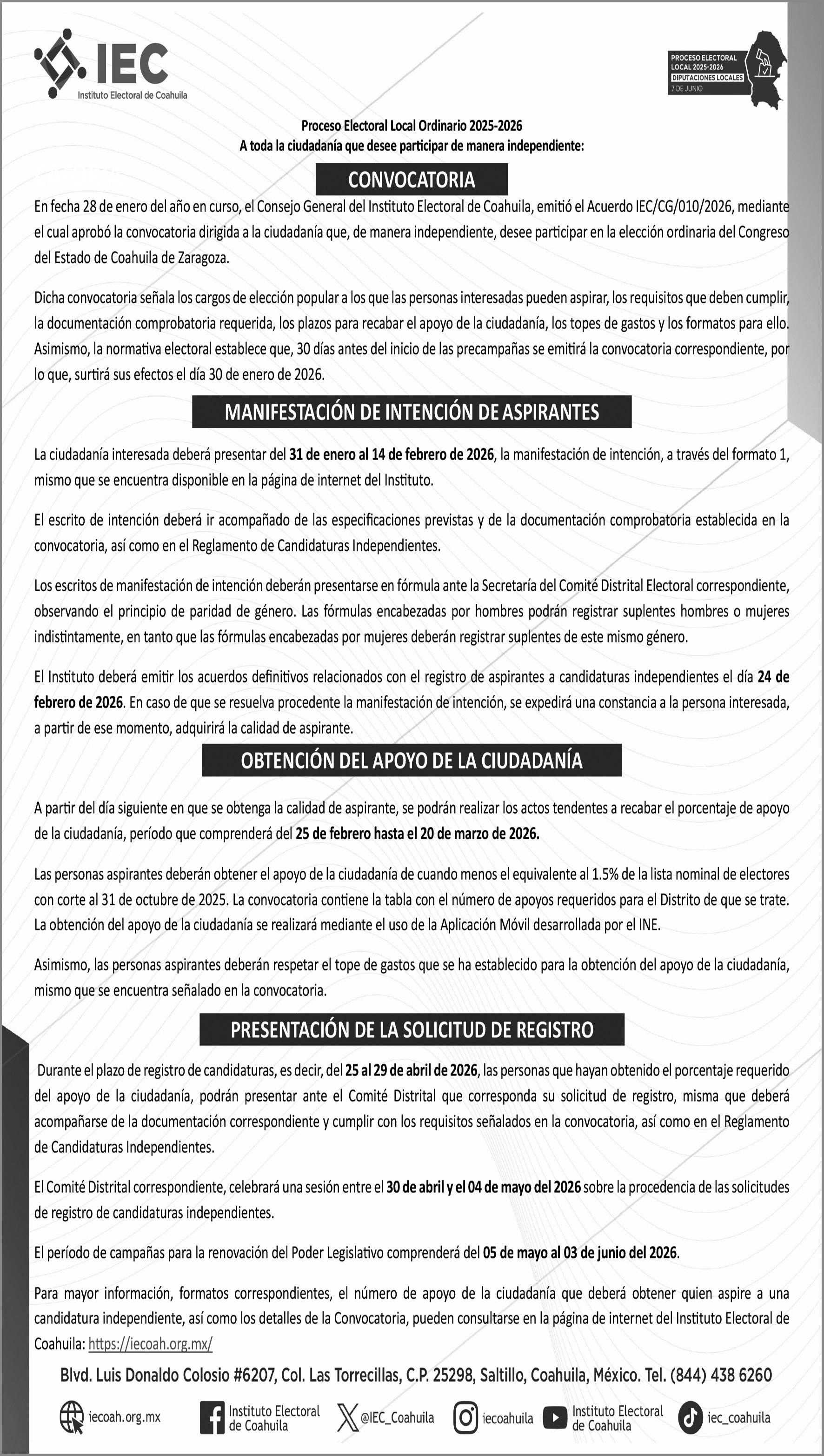 Bajo el nombre de Alianza Ciudadana por la Seguridad, el PRI y UDC entregaron ante el Instituto Electoral de Coahuila la solicitud de convenio de coalición, tras lo cual, declararon que repetirán el triunfo electoral del 2024 porque este 2026 van por el carro completo, ganando los 16 distritos.