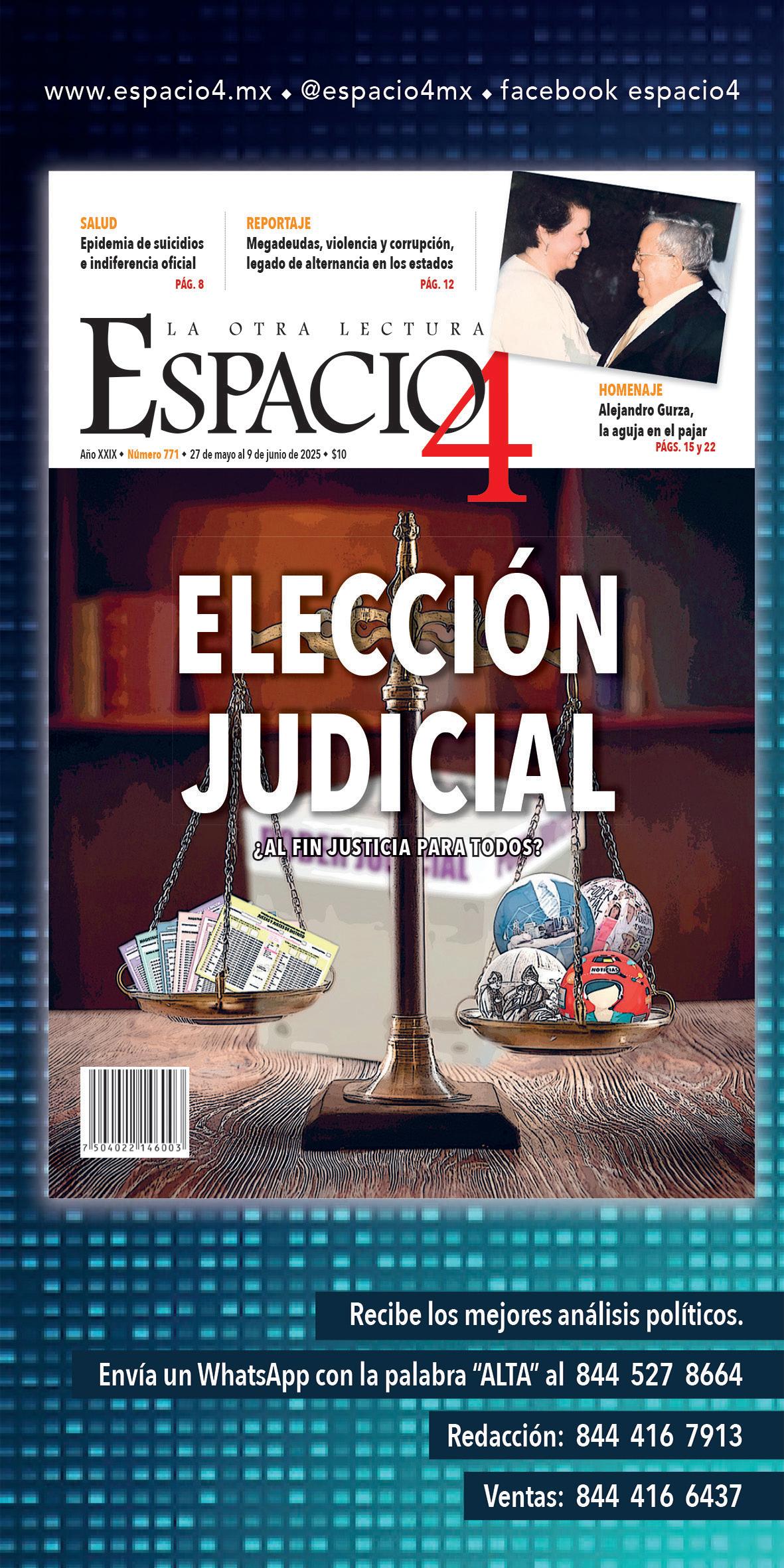 Por cierto, en la sesión solemne del Congreso del Estado en San Buenaventura, para declarar formalmente a la Feria del lugar como Patrimonio Cultural Intangible de Coahuila, se contó con la presencia del magistrado presidente del Poder Judicial, Miguel Felipe Mery Ayup. Como no podía ser de otra manera, fue abordado para que hablara de las elecciones del 1 de junio. Si bien, destacó diversos retos, áreas de oportunidad, complicaciones y “asegunes”, lo cierto es que destacó la importancia de acudir a emitir el sufragio.